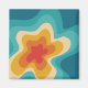 Abstract illustration of colourful retro style swirl design in blue, turquoise, beige, orange, red and mustard colours