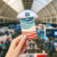 Abstract retro style illustration of colourful (red, blue, orange, navy blue, beige, turquoise) waves decoration on white background. You can add your name/monogram to personalise the item.