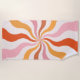 Let the sunshine in retro style illustration with colourful (orange, purple, brown, pink) curvy sun rays on pastel pink background for summer lovers.
