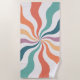 Let the sunshine in retro style illustration with colourful (orange, purple, brown, pink, blue, turquoise) curvy sun rays on pastel pink background for summer lovers.