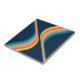 Abstract illustration of retro style wings design in yellow, orange, turquoise, blue colours on navy blue background for everybody who likes bright colours and groovy retro style decoration.
