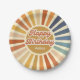 Colourful Retro Sun Groovy Wave Happy Birthday Paper Plate