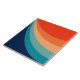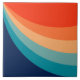 Abstract illustration of colourful (red, orange, blue, turquoise, navy blue) sun rays with curvy geometric stripes decoration