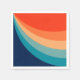 Abstract illustration of colourful (red, orange, blue, turquoise, navy blue) sun rays with curvy geometric stripes decoration