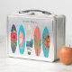 Colourful Retro Surfboards Pattern Custom Name Metal Lunch Box