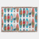 A colourful retro themed surfboard pattern design featuring different types surfboard art. Vintage illustrations of tropical fish, beach, hibiscus flowers and palm trees create an eclectic mix of colourful surfboards. Ideal surfboard design for anyone who loves surfing, the beach, colourful beach themed gifts and décor.