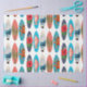 A colourful retro themed surfboard pattern design featuring different types surfboard art. Vintage illustrations of tropical fish, beach, hibiscus flowers and palm trees create an eclectic mix of colourful surfboards. Ideal surfboard design for anyone who loves surfing, the beach, colourful beach themed gifts and décor.