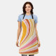 Colourful retro vibes abstract illustration with wavy pink, purple, brown, beige, yellow and orange wavy sun rays on pastel background