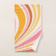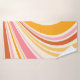 Colourful retro vibes abstract illustration with wavy pink, purple, brown, beige, yellow and orange wavy sun rays on pastel background