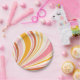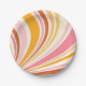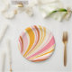 Colourful retro vibes abstract illustration with wavy pink, purple, brown, beige, yellow and orange wavy sun rays on pastel background