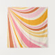 Colourful retro vibes abstract illustration with wavy pink, purple, brown, beige, yellow and orange wavy sun rays on pastel background