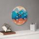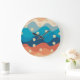 Colourful Retro Waves & Daisies Pattern Large Clock