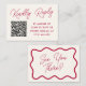 A retro RSVP enclosure card to match our Wavy Frame Retro Wedding collection. This design features the text in cherry-red colour chic script calligraphy. There is a QR code to RSVP online & see other details on your wedding website. View the collection linked on this page for matching items. Feel free to message me with any questions, I'll be happy to help!