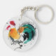 Colourful Rooster. Calligraphy and watercolor. Key Ring