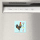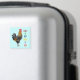 Photograph of colourful rooster with the words "Early to bed, early to rise" printed down side.