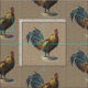 Colourful Rooster On Faux Jute Burlap Pattern Fabric