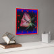 A shot of a Rose closeup thats bright and colourful on a Square clock.