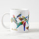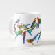 Original fine art design of colourful Rosella parrots by artist Carolyn McFann printed on a microwave and dishwasher safe jumbo-sized mug for parrot fans.