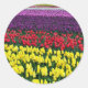 Colourful rows of spring tulips classic round sticker