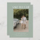 Colourful Elegant Art Deco Wedding Save The Date in Sage Green with Photo
