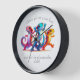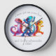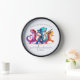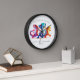Indulge your child's fascination with lizards with this wall clock, which features three colourful dancing salamanders, accompanied by the whimsical limerick, "C'mon get on your feet and do the salamander slide!" Reverse shows identical design.