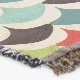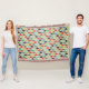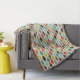 A colourful scalloped pattern throw blanket in various colours including blue, teal, red, black, light green, brown, and white, perfect for the living room, den, bedroom, or family cabin!
