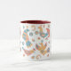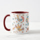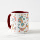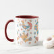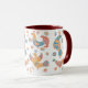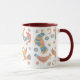 Several Scandinavian style bird images in colours of blue, gold, and pink make a unique and interesting pattern on this mug.