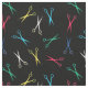 Black fabric with a modern pattern of scissors in strong colours scattered over the dark background. Perfect for barbers, hair dressers, and similar.
