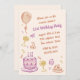 This charming yellow, orange and purple birthday party invitation features birthday icons in a whimsical, doodle, scribble style, including a balloon, drinking glasses, birthday cake, cherries, ribbon, cupcake and slice of cake.