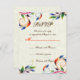 Colourful scroll leaf on ecru patterned retro background wedding RSVP card, featuring a colourful in rainbow colours scroll leaf on retro ecru patterned background.