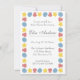 Colourful and interesting shapes of Sea shells (clam and star shapes) Pattern Baby Shower Invite suitable for sea shell and beach themes. Easily personalise with your party details.