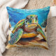 Vivid artistic depiction of a sea turtle with bright colours swimming among corals in a clear underwater ocean scene.