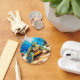Vivid artistic depiction of a sea turtle with bright colours swimming among corals in a clear underwater ocean scene.