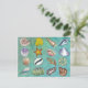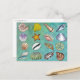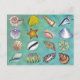 Sixteen hand drawn seashells on a brilliant background make for a fun postcard to brighten up someone's life.
