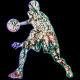 This vibrant design features the vibrant silhouette of a basketball player performing a spectacular dunk, with dynamic colours and a modern art style. Ideal for lovers of