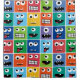 Colourful Silly Monster Face Monsters Pattern Kids Shower Curtain. Monster themed bathroom decor for kids. Red, orange, yellow, green, blue and purple monster faces in square pattern covering this shower curtain. One and two eyed monsters with silly expressions in a fun pattern.