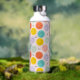 The bottle looks even better in real life. The ice cubes I put in lasts all day! I have my bottle with me all the time. It's summer and having something cold to drink feels amazing. With this bottle I always have something super cold. I have only tried the hot drink once and it lasted a long time as well. The color blue is a navy blue and the white printed on it is vibrant. It printed perfectly. I love my personalized smile water bottle.
