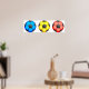 Illustration of a blue, yellow and red soccer ball standing in a row.