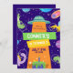 Colourful Space and Dinosaurs Birthday Celebration Invitation.