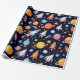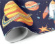 Vibrant seamless pattern showcasing rockets, planets, and stars against a dark space background. Perfect for educational, decorative, or children's themed designs related to the universe and outer space.
