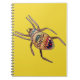 Colourful and bright, this is a hand drawn illustration of a doodle designed spider by artist Sacha Grossel. This bright and hip arachnid is arty and tribal and kind of cute. It is on a mustard yellow background. The background colour can be customised to your taste.