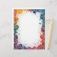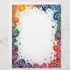 Colourful and exhuberant, this letterhead has splatterpant in yellow, breen, blue, and orange, with white swirls, surrounding a large central space.  Perfect for casual correspondance, artsy newsletters, and fun invitations.