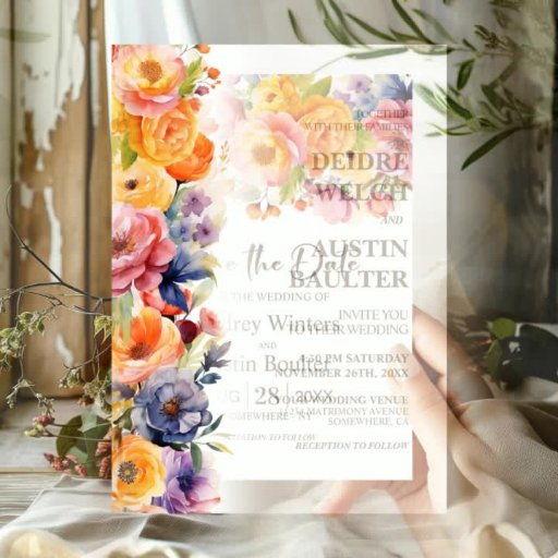 Invite your friends and loved ones to your wedding to witness and celebrate the beginning of your lifelong journey with this colourful spring floral wedding invitation. The customisable text allows you to effortlessly add the bride and groom’s names, wedding date, and the necessary details of your celebration. A variety of paper types and corner styles are available for your unique invitations, along with the option to download if you prefer a digital format.