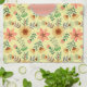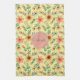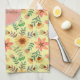 Beautiful and colourful vintage spring pink peach yellow flowers with leaves hand drawn seamless pattern girly name monogram on yellow background kitchen towel. It's a beautiful and cute any occasional unique gift for her who loves colourful spring flowers. You can change the text and colour by Zazzle's customisation tools.