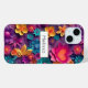 A phone case with a cool digital 3d style pattern. Bright and colourful flowers with a cool style which looks like paper cutouts. Fun and fanciful design.