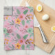 Cute and colourful vintage spring flowers pink yellow mint green seamless pattern girly name monogram on pink kitchen towel. It's a beautiful and cute hand drawn summer flowers print any occasional unique gift for her who loves colourful spring flowers. You can change the text and colour by Zazzle's customisation tools.