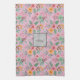 Colourful Spring Flowers Pattern Name Monogram Tea Towel