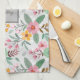 Cute and colourful vintage spring flowers pink yellow mint green seamless pattern girly name monogram kitchen towel. It's a beautiful and cute hand drawn summer flowers print any occasional unique gift for her who loves colourful spring flowers. You can change the text and colour by Zazzle's customisation tools.