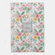 Colourful Spring Flowers Pattern Name Monogram Tea Towel