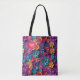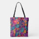 A tote bag with a cool digital 3d style pattern. Bright and colourful flowers with a cool style which looks like paper cutouts. Fun and fanciful design.